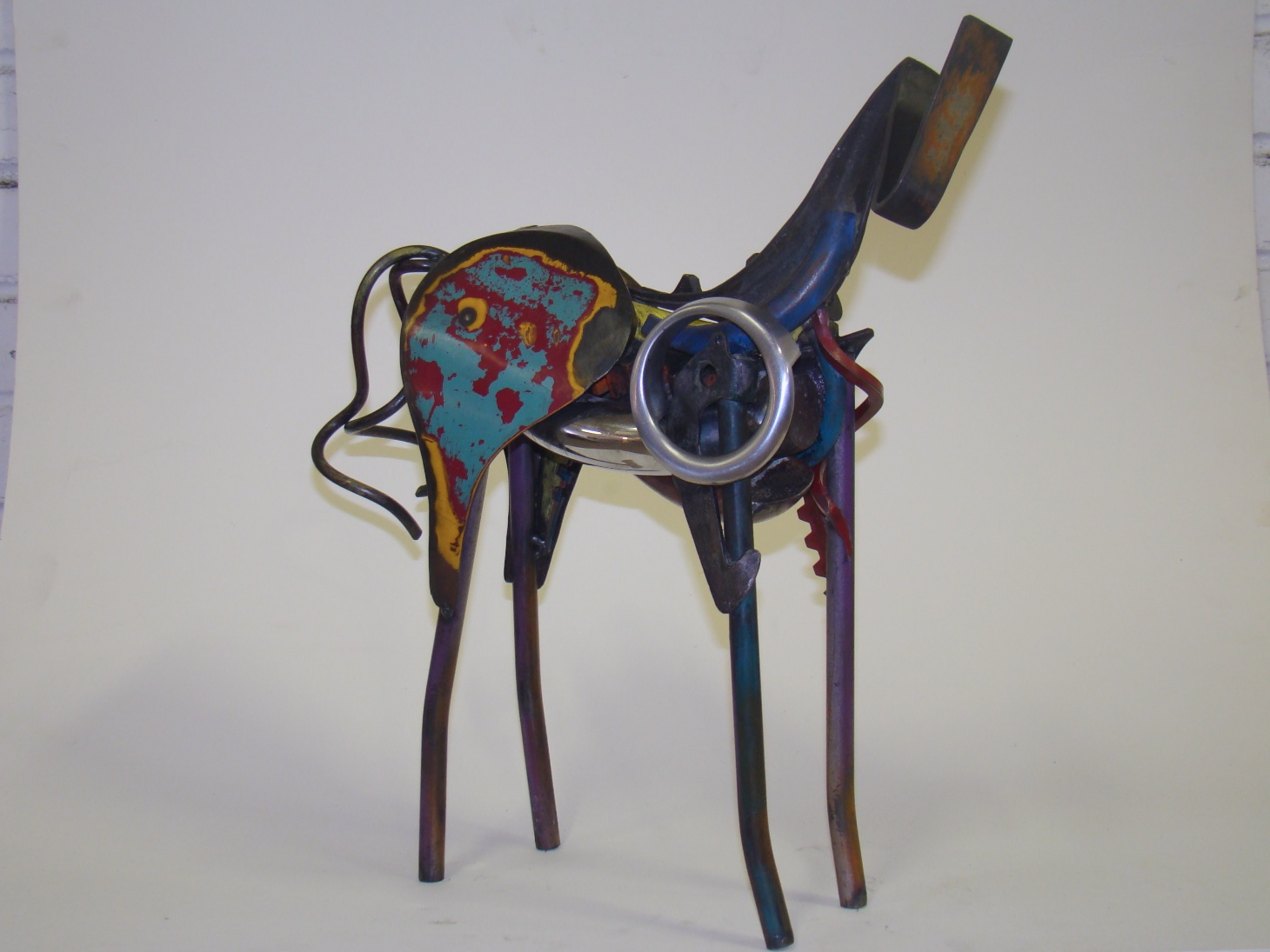 After much talking and head scratching, I knew it was time to move again. I just could not get my head around making the Expansive Horses smaller. I was finely able to visualize The Slightly Contained Horse: not smaller than the Expansive Horses but double the size of the Contained Horses. I love what happens when you double the size of a three dimensional object — it appears to be about 4 times bigger. As much as I try to avoid the tape measure and ruler, I measured the basic components of the Contained Horse and multiplied by 2. What happened just amazed me. The Slightly Contained Horse just became a presence in my studio. Like her big sisters she dominated the space, but without filling it up. Put her on a pedestal and she owns her corner of the room. On a coffee table, she is like good music — she fills the space but never interferes with the action of the room.
