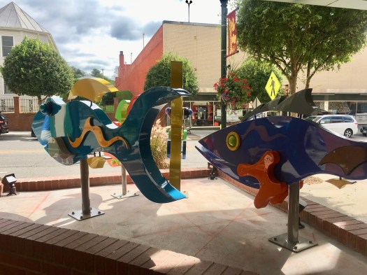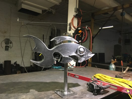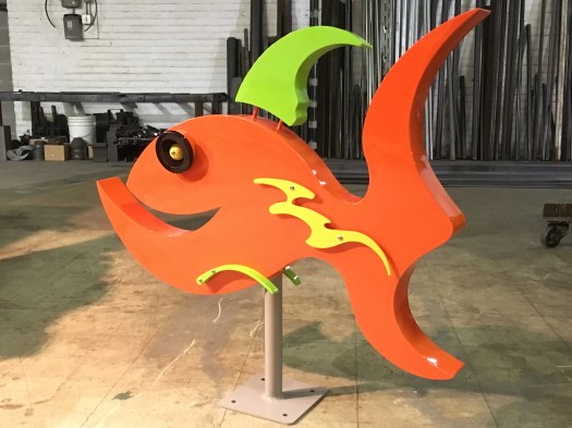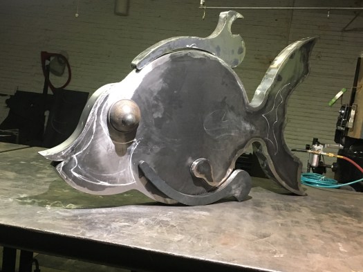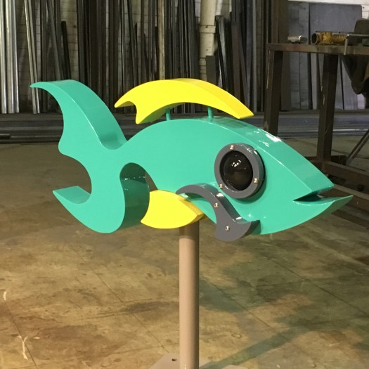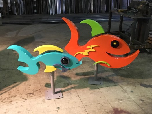 Wertz says he started making fish many years ago simply because his son is an avid fly fisherman. “I wanted my son to believe that I really was an artist, so I made something I knew he loved — fish.” The fish series proved to be very popular. Like everything, though, the fish designs had to grow and change — from the original, realistic Steelheads of the Pacific Northwest to the present abstractions of colorful and whimsical tropical creatures that suggest far-flung exotic places. Each fish is an original: a one-of-a-kind piece of art. They are hand fabricated from hot rolled carbon steel and then painted and patinaed as only Wertz can do. These fish look as if they have just finished a long hard migration. Let’s just say, getting some personality out of a fish can be a challenge, and from the look of these fish, Wertz has figured it out.