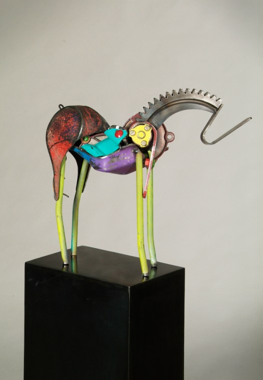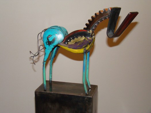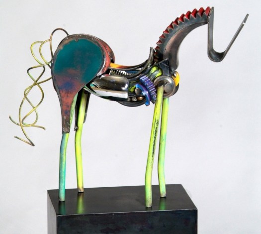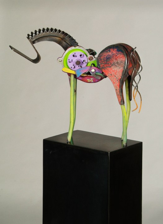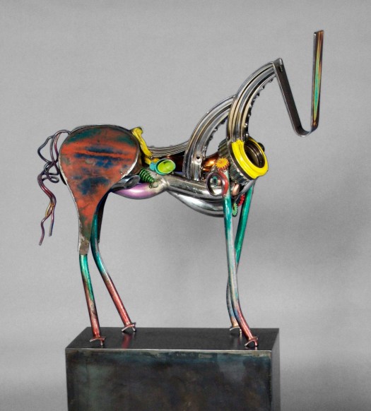 This is my first series incorporating repurposed steel. Using only posture to achieve personality is my challenge here. I am very excited to bring the colors and patinas of old and weathered steel to life in the figures of horses.