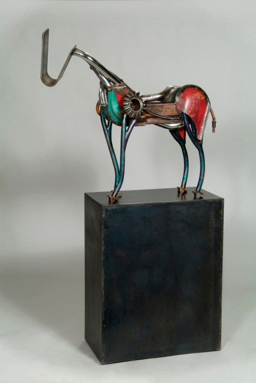 The irony of using reclaimed metal to create something organic, like a horse, has led me down a road I would never have expected. The excitement of discovering the physicality of the horse in relation to our perceived ideas of them has allowed me to explore the possibilities and bump up against the limits of this reclaimed material while I continue to explore the mysticism of the curve.
